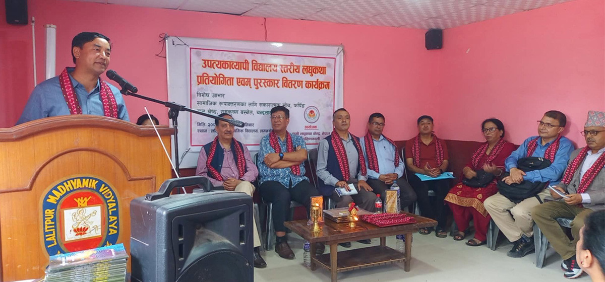 हाम्रो लघुकथा केन्द्र, लघुकथा प्रतियोगिताकाे माध्यमबाट विद्यालय स्तरमा पुगेकाे छ।हाम्रो लघुकथा केन्द्र, दक्षिणकालीले उपत्यकाव्यापी माध्यमिक विद्यालय स्तरीय लघुकथा प्रतियोगिताको नतिजा सार्वजनिक गरी पुरस्कार प्रदान गरेको छ।