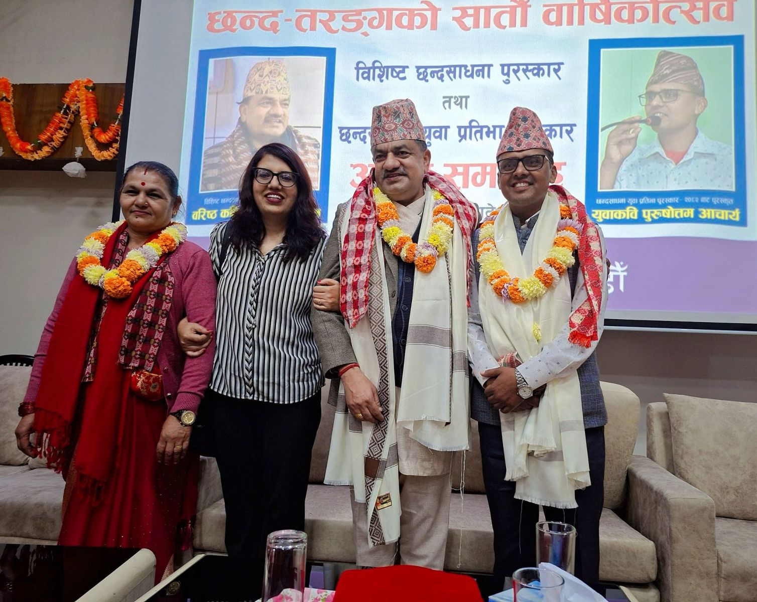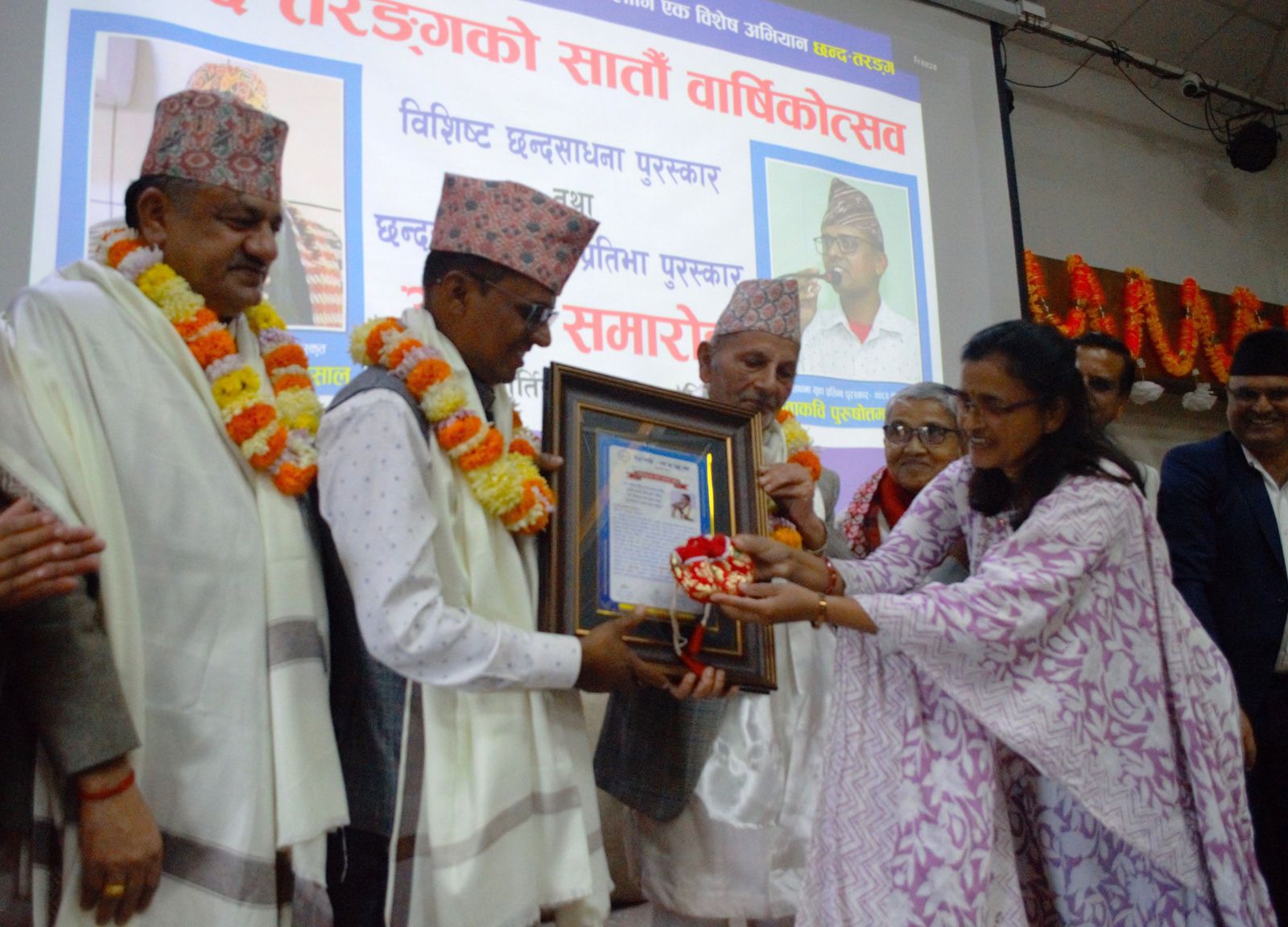 छन्दसाधना पुरस्कार यस वर्ष दुई छन्दसाधक कविहरू डा. नवराज लम्साल (जीवनसँगिनी सङ्गीता लम्सालसहित) र पुरुषोत्तम आचार्यलाई प्रदान गरेको छ।