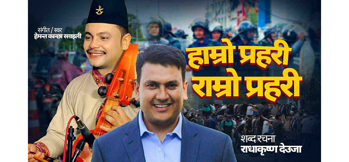 अमेरिकामा रहेर पनि निरन्तर नेपालमा कानुनी शासन, सामाजिक सद्भाव र सुरक्षा निकायहरूलाई सशक्त, सक्षम र उत्तरदायी बनाउनुपर्ने पक्षमा आवाज उठाउँदै आएका राधाकृष्ण देउजाले ७० औं प्रहरी दिवसको अवसर परेर ‘हाम्रो प्रहरी, राम्रो प्रहरी’ बोलको गीत सार्वजनिक गरेका छन्। उक्त गीतमा नेपालको प्रहरीप्रतिको सम्मान र माया प्रकट गर्ने एक अर्थपूर्ण शब्दहरू समेटिएको पाइन्छ।