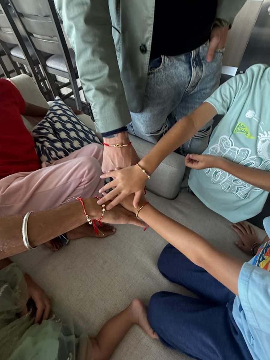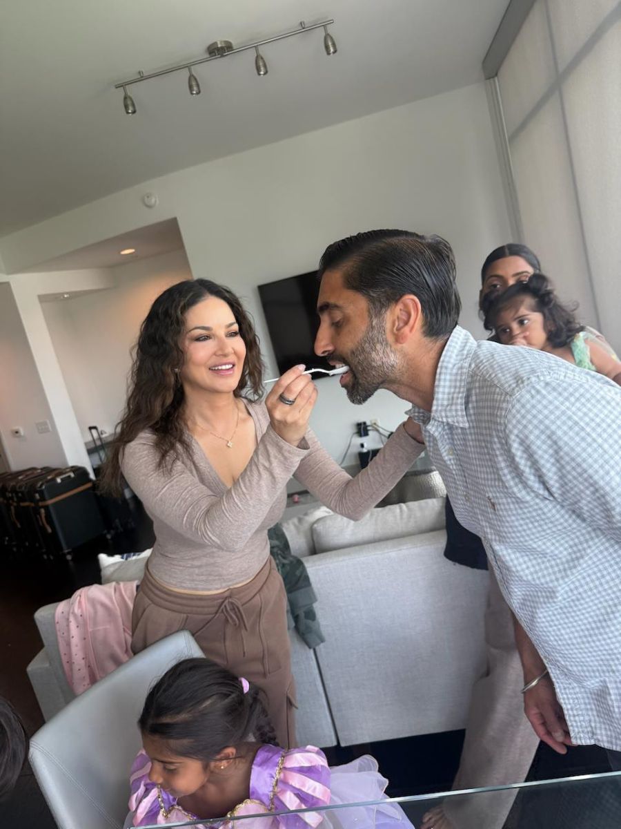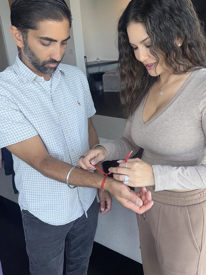 तस्बिरमा सन्नी आफ्नो कान्छो भाइलाई राखी बाँध्दै धेरै खुसी देखिएकी छिन्। सन्नीले पाँच तस्बिर सेयर गर्दै खुसी साटेकी छिन्।