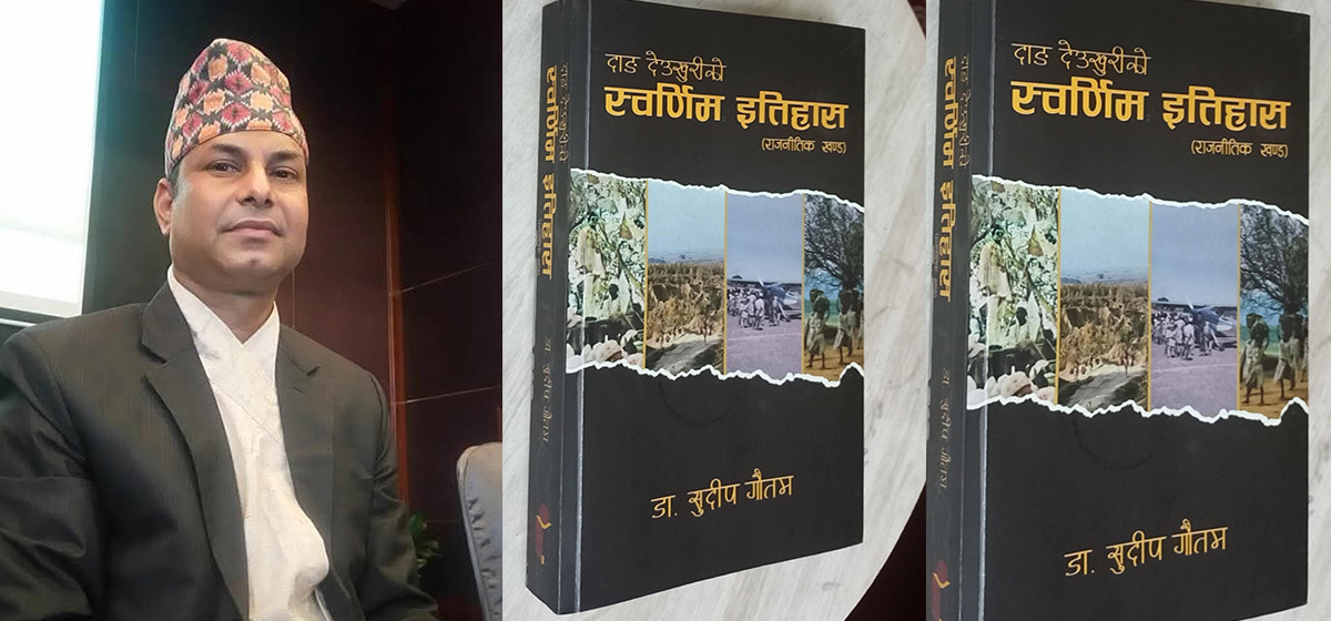 ‘थेसिसका रूपमा गरिएको थारु राजनीतिक इतिहासिको कथाले मलाई समग्र दाङको इतिहास खोज्न प्ररित गर्यो,’ डा. गौतम भन्छन्, ‘यसका लागि मैले लामो समय खोज अनुसन्धानका लागि खर्चिएँ र लामो समयको अध्ययन पश्चात यो पुस्तकको निर्माण गर्न सफल भएँ।’ पुस्तक लेखक दाङ घोराहीका डा. गौतमले राजनीतिक इतिहासमा पिएचडी गरेका छन्। लामो समयदेखि पत्रकारिता क्षेत्रमा समेत सकृय रहँदै आएका डा. गौतम जिल्लाका विभिन्न सञ्चार माध्यममा सम्पादकीय भूमिकामा रहेर काम गरिसेका छन्। हाल उनी नेपाल प्रेस युनियनका लुम्बिनी प्रदेश अध्यक्ष समेत हुन्।