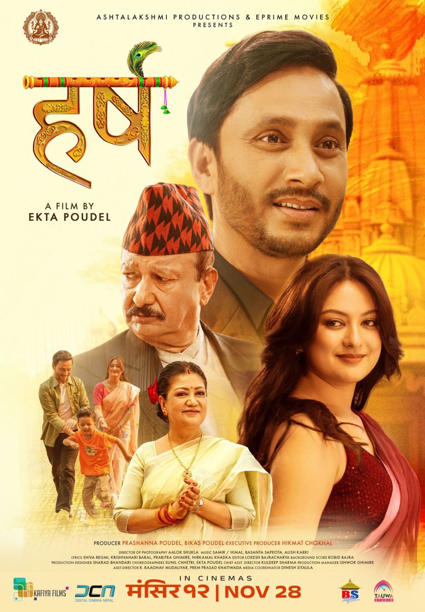 एकता पौडेलको डेव्यु निर्देशकीय सिनेमा 'हर्ष' को फर्स्टलुक पोस्टर सार्वजनिक भएको छ। सोमबार बिहान सिनेमाका दुई पोस्टर सार्वजनिक गरिएका हुन्। सिनेमा मंसिर १२ गते रिलिज हुँदैछ।