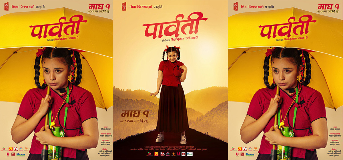 सार्वजनिक पहिलो पोस्टरमा ‘पार्वती’ पहेँलो छातामुनि, सिठी र पानीको बोतल बोकेर गम्भीर मुद्रामा देखिन्छिन्। यसले उनको जीवनमा हुने चुनौती, सोचमग्न स्वभाव र भित्रै लुकेको संवेदनशीलता झल्काउँछ।