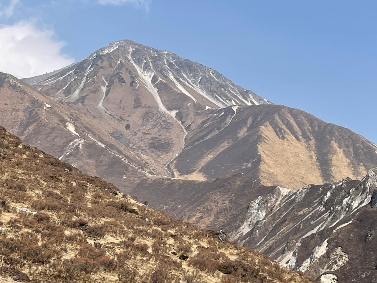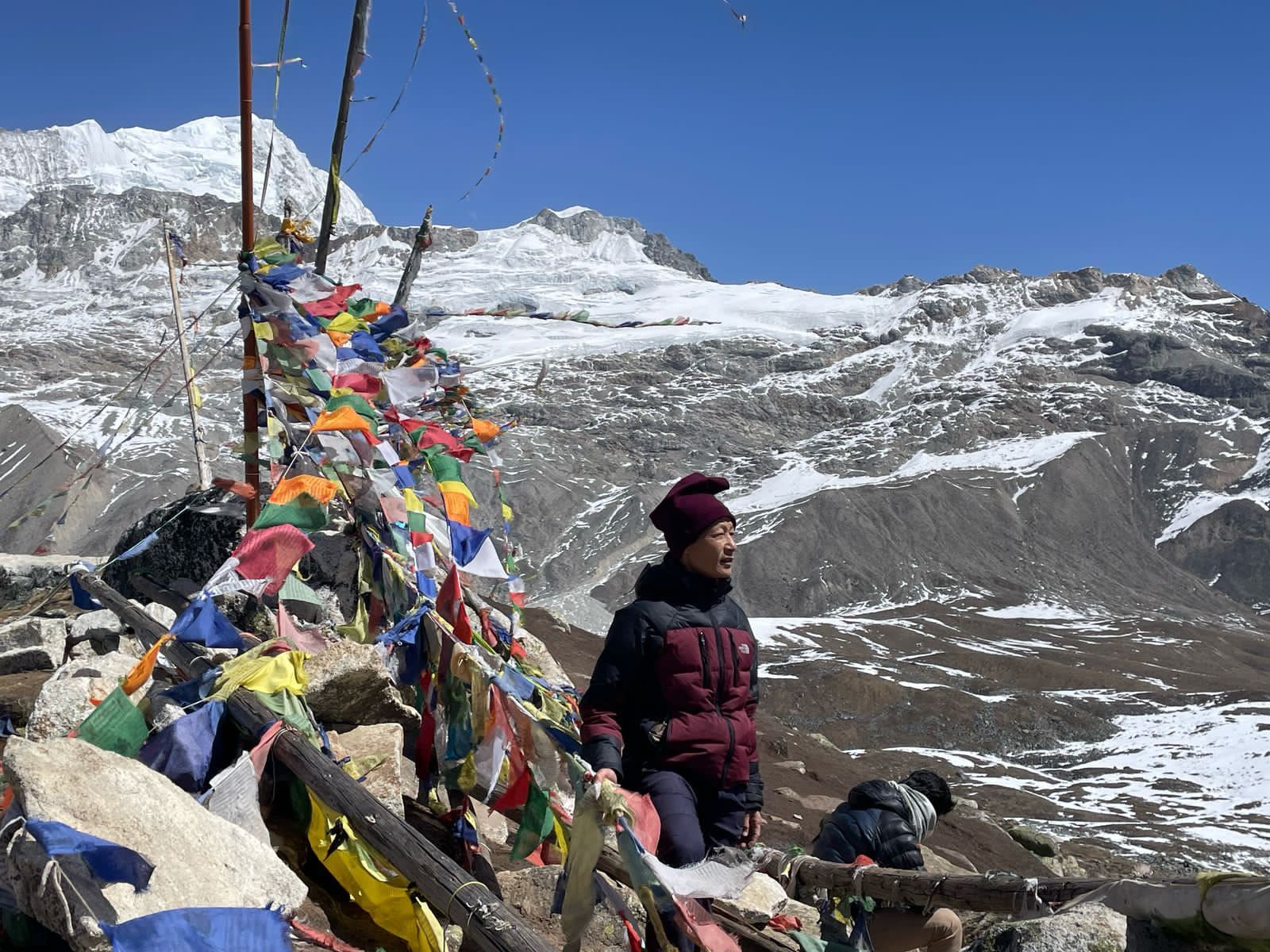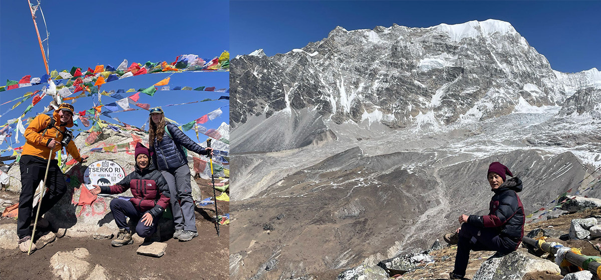 सामुन्ने दोर्जे लाक्पा हिमाल हाँसेको छ। गाङछेम्पो र गन्जला चुली, नयाँखाङ चुली दायाँ सरेका छन् भने उर्केमा चुली/स्काउट चुली हाम्रो पछाडिपट्टि।