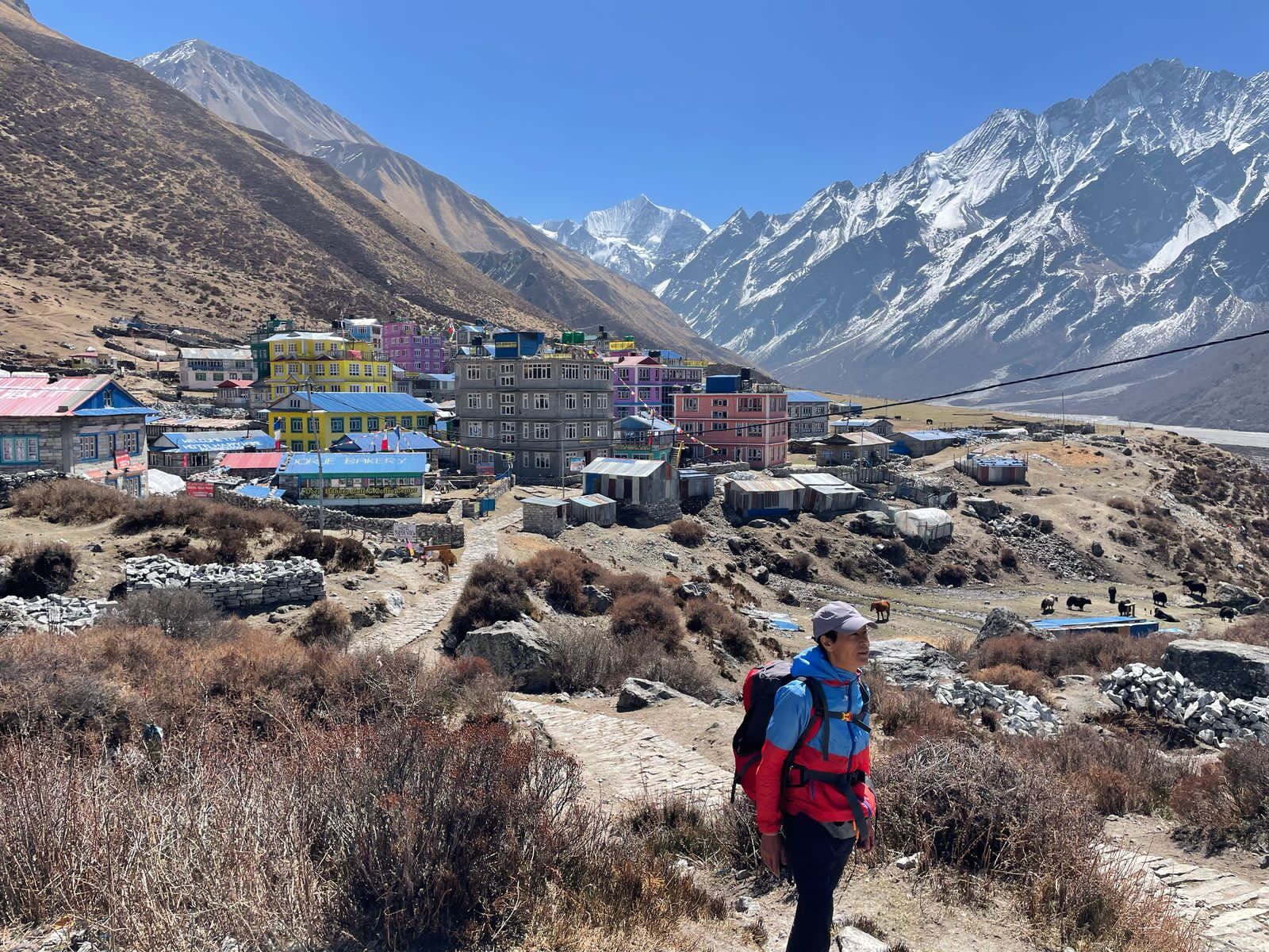 केही पर भिरालो खर्कमा झारलका बथान उफ्रिँदै उँधो झर्दै छन्। लाङटाङ लिरुङ, किमजुङ हिमाल, क्यान्जिङ री, पाल्दो री सबै नजिकिँदै आएका छन्।