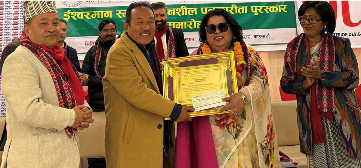 मुक्तक साम्राज्ञी उषा शेरचनलाई ईश्वरमान स्मृति सिर्जनशील पत्रकारिता पुरस्कार- २०८२ प्रदान गरिएकाे छ।