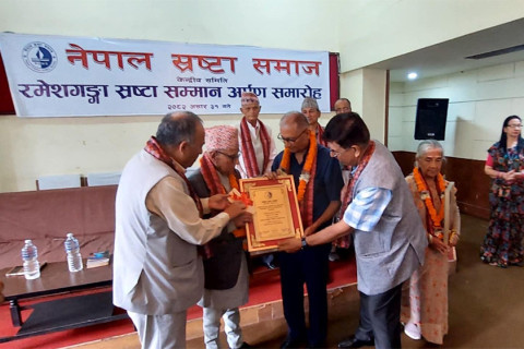 नेपाल स्रष्टा समाजले ‘रमेश गंगा स्रष्टा सम्मान-२०८०’ बाट साहित्यकार सरस्वती रिजाल र ‘रमेश-गंगा स्रष्टा सम्मान-२०८१ ‘ बाट साहित्यकार विधान आचार्यलाई सम्मान गरेकाे छ।