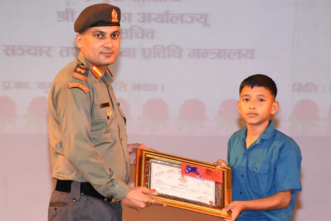 सशस्त्र प्रहरी निरीक्षक स्व. दुर्गाबाबु पाठकको स्मृतीमा स्थापित ‘दुर्गाबाबु पाठक स्मृति सङ्गीत पुरस्कार’ नेपाल एपीएफ ठाकोदेवी जोगेन्द्र भगत स्कुल शम्भुनाथ सप्तरीमा अध्ययनरत कक्षा ८ का छात्र प्रज्वल पौडेललाई प्रदान गरिएको छ।