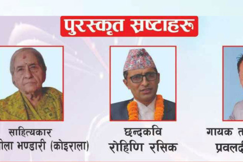 ‘रमेश गंगा स्रष्टा सम्मान-२०८०’ बाट साहित्यकार सरस्वती रिजाल र ‘रमेश-गंगा स्रष्टा सम्मान-२०८१‘ बाट साहित्यकार विधान आचार्यलाई सम्मान गर्ने भएको हो।