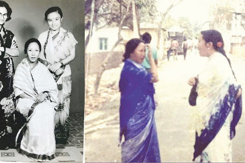 महिलाले पुरानो फोटो देखाउँदै भनिन्, “यी हेर यो फोटो। यो फोटोमा म, तिम्रा बा अनि तिमीहरू पनि छौ।”