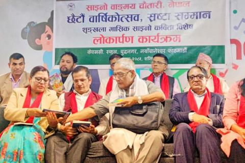 प्रमुख अतिथि भट्टराईले वरिष्ठ साहित्यकार माेहन दुवाल, युवाकवि प्रकाश समीर तथा कवि कमला भण्डारी ढकाललाई दाेसल्ला र सम्मानपत्रले सम्मान गर्दै साइनो कवितामा रहेको मौलिक नेपालीपनकाे प्रशंसा गरेका थिए।