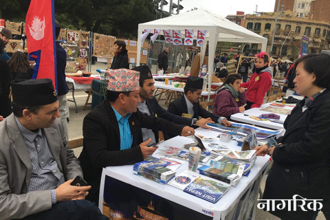 नेपालमा पर्यटन प्रवर्द्धनका लागि स्पेनमा नेपालको पर्यटकीय तस्बिरसहितका सामग्री प्रदर्शन एवं वितरण गरिएको छ । नेपाली जनप्रगतिशील मञ्च स्पेनले शनिवार स्पेनको बार्सिलोना स्थित विश्व प्रसिद्द रोमन क्याथोलिक गिर्जाघर सग्रादा फैमिलियामा विदेशी नागरिकलाई नेपालका पर्यटकीय ठाउँका फोटोसहितका सामग्री वितरण गरि प्रचार प्रसार गरेको हो ।
