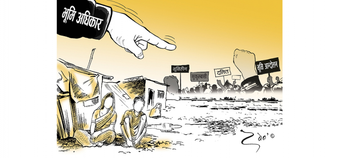 यतिबेला मुलुकका विभिन्न ठाउँमा भूमाफियाले सार्वजनिक जग्गामा गरेका चलखेलका खबरले सञ्चारमाध्यम भरिएका छन्। यस्तो समस्या देशको कुनै दूरदराजको मात्र नभई राजधानी काठमाडौँमा समेत उत्तिकै छ। त्यो पनि राजधानीको मुटु अर्थात् मुलुकका कार्यकारी प्रमुख बस्ने बालुवाटारभित्रैसम्म। यस्तो अवस्थाले नै बताउँछ कि हामी अत्यन्तै डरलाग्दो बाटोतर्फ यात्रा गरिरहेका छौँ।