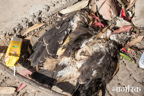 काठमाडौँ महानगरपालिकाको कार्यालय बागदरबार नजिकै चार दिन देखि मरेको चरा बेवारिसे अवस्थामा छ।