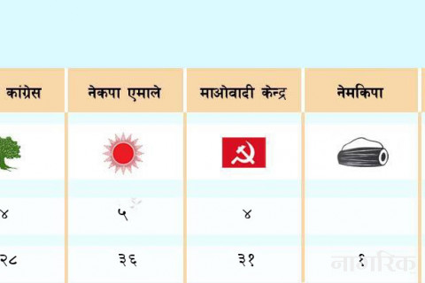 पहिलो चरणमा आइतबार सम्पन्न स्थानीय तह निर्वाचनको प्रारम्भिक मतपरिणामले प्रमुख चार महानगरपालिकासहित सबैभन्दा बढी गाउँपालिकामा एमाले अघिअघि, त्यसपछि क्रमशः काँग्रेस र माओवादी पछिपछि देखिएका छन्।