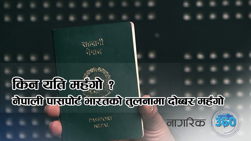नेपालको पासपोर्ट विश्वकै कम शक्तिशाली सूचीमा पर्छ। तर यसको मूल्यको हिसाबले छिमेकी देशहरु भन्दा निकै महँगो रहेको पाइएको छ। ३२-पृष्ट लामो पासपोर्ट सामान्य प्रकियाबाट लिनको लागि रु ५,००० तिर्नु पर्छ। सामान्य प्रक्रियाबाट पासपोर्ट लिदा जिल्ला हेरेर कम्तिमा १० दिन देखि ३ महिनासम्म लाग्न सक्छ।