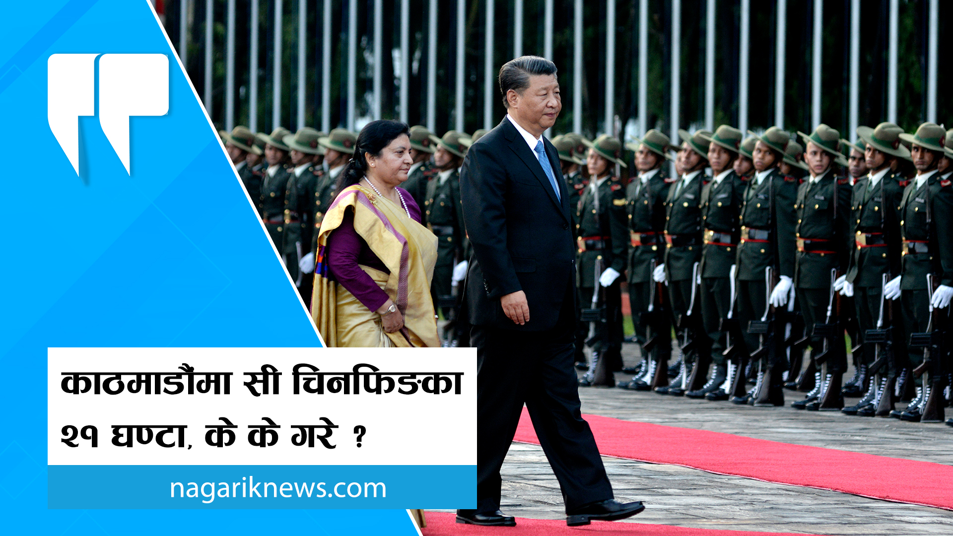 चिनियाँ राष्ट्रपति सी चिनफिङ नेपालको दुई दिने राजकीय भ्रमण गरेर आज फर्किएका छन्। एयर चाइनको विमानबाट शनिवार साँझ ५ बजे काठमाडौं अवतरण गरेका चिनियाँ राष्ट्रपति सीले काठमाडौंमा करिब २१ घण्टा बिताएका थिए।