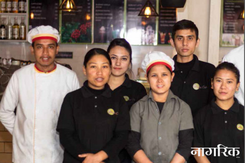 बानेश्वर चोकदेखि पश्चिमपट्टि केही मिटरको दूरीमा रहेको माइती क्याफे । पुस आठ गते बिहान ११ बजे जाँदा पुनम थापाले नमस्कार भन्दै स्वागत गरिन् । काठैकाठले बनेको कुर्सी र टेबल नजिकै गमलामा फूलेको फूलले क्याफेको रौनक त बढाएकै थियो नै पृष्ठभूमिमा बजेको आध्यात्मिक संगीतले वातावरण शान्त बनाएको थियो ।