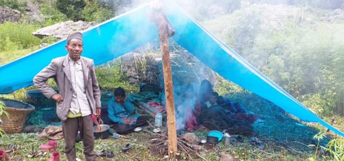 'दुई परिवारका १३ जना सदस्य उन्यु (घाँसको ओछयान) र ढुङ्गाको सिरानीको साहारामा भेडा बाख्रको बथान झै सुत्ने गरेका छु। सहारा दिने कोही छैन। गाउँ बस्ती आधा घण्टा भन्दा टाढा छ। स्थानीय सरकाले हाम्रो पिडा सुने कै छैन। सदरमुकाम चैनपुर जाँउ भने बाटो र पैसा दुबै छैन कसरी जाने हाम्रो पिडा सुन्ने कोही भएन। त्रिपालमा खाउ भने एक मुठि अन्न छैन। कसरी बाँचने थाहा छैन।'