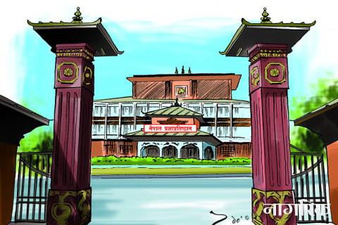 राजधानीको कमलादीस्थित रातो घर, अग्रभागमा लेखिएको छ– नेपाल प्रज्ञाप्रतिष्ठान । कुनै बखत त्यहीँ लेखिएको थियो– नेपाल राजकीय प्रज्ञाप्रतिष्ठान । तर, राजाको सत्तासँगको लडाइँमा राजकीय भन्ने शब्दलाई राजा–शब्दसँग जोडी, त्यो शब्दमाथि नै ‘साहित्यिक लडाकूहरू’ले आपत्ति जनाएर राजकीय–शब्द हटाए ।