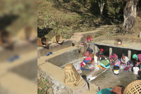 पोखरा महानगरपालिका–२६ को ठुलोपँधेरोमा स्थानीय गृहिणीको भीडभाड। सिरान क्षेत्रमा मोटरबाटो खनिँदा यो पँधेरोको श्रोत कमजोर बनेको छ। तस्बिर सौजन्यः राजन सुवेदी