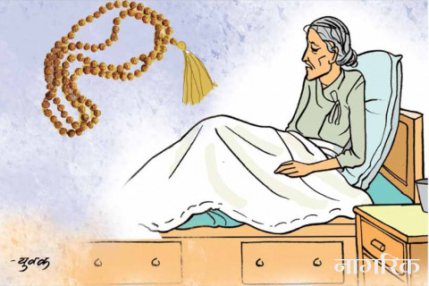 ‘के भन्छ्यौ छोरी ? यो मानव चोला नै पापी चोला हो। यहाँ झूटो नबोली बाँच्नै सकिँदैन। तेरो बाउले अग्नि साक्षी राखी बाँचेसँगै बाँचुला, मरेसँगै मरुँला भनी बचपनमै मलाई ल्याएर यो बुढेसकालमा एक्लै छोडेर गए। के यो झूटो होइन?’