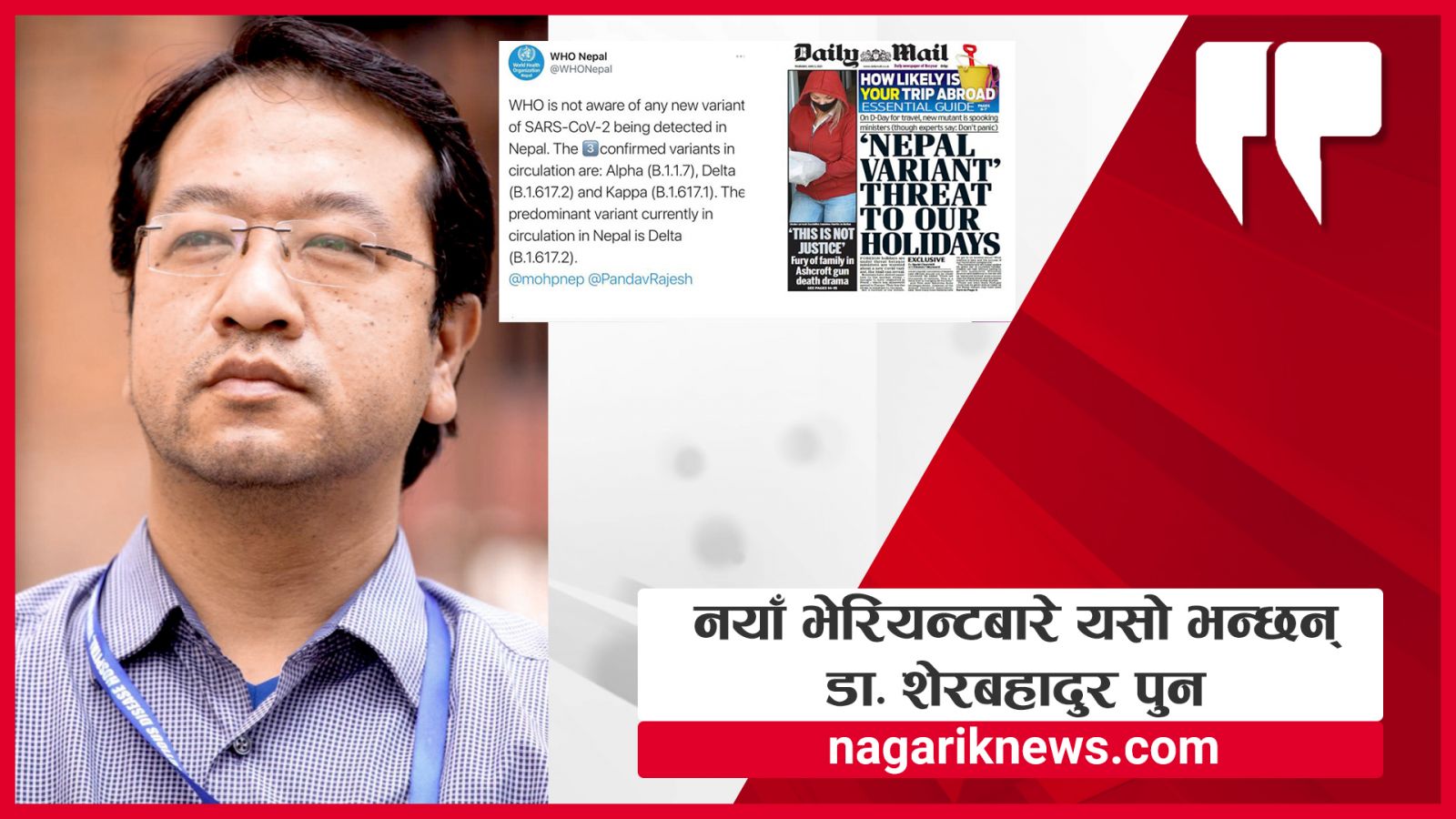 ‘अर्काे महत्वपूर्ण कुरा भनेको नेपालमा भाइरसले स्वारुप परिवर्तन गरिहेको छ भन्ने कुरा जान्न जरुरी छ’, डा. पुनले भने, ‘त्यसैले नयाँ भेरियन्ट बन्नु आफैमा कुरा होइन। त्यसले मानव समाजलाई कति दुःख दिन्छ भन्ने प्रमुख कुरा हो। तर नयाँ भेरियन्ट देखिँदैमा आत्तिनु हुँदैन।’
