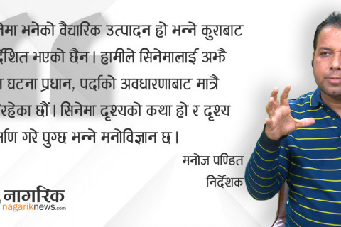 मनोज पण्डितलाई नेपाली सिनेमाका स्पष्ट वक्ता र गम्भीर चिन्तक भन्दा फरक नपर्ला। दुई दशकदेखि नेपाली सिनेमामा सक्रिय पण्डितका अहिलेसम्म ‘लक्ष्य’, 'बधशाला’, ‘दासढुंगा’, ‘खाग’, लघु चलचित्र ‘छायाँ’ र वृत्तचित्र ‘ग्रेटर नेपाल’ निर्देशन गरिसकेका छन्। पछिल्लो समय उनको चलचित्र ‘एक’ रिलिजको तयारीमा छ। कुनै समय चलचित्र समीक्षकसमेत रहेका पण्डितले ‘सिनेमा मन्थन’ पुस्तक बजार ल्याइसकेका छन्।