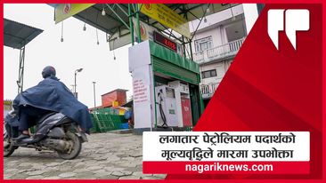 नेपाल आयल निगमले पेट्रोलिय पदार्थको मल्य बढाएसँगै सर्वसाधारणले गुनासो गरेका छन् । निगमले पेट्रोलियम पदार्थको मूल्य बढाएको दुई साता पनि नबित्दै फेरि मूल्य बढाएको हो ।
