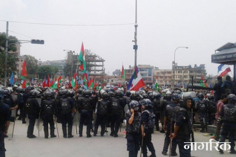 संविधानमा असन्तुष्टि जनाउँदै आन्दोलनमा उत्रिएका मधेसी मोर्चासमेत सहभागी भएको संघीय गठबन्धनले काठमाडौं केन्द्रीत आन्दोलन सुरु गरेको छ। शनिबार विरोध प्रदर्शन गरेको २९ दलीय गठबन्धनले आइतबार सिंहदरवारका विभिन्न नाकामा धर्ना दिएको छ। संघीय समाजवादी फोरम नेपालक