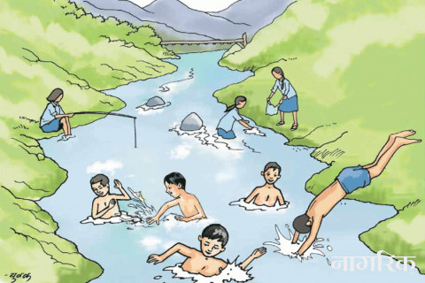 जुनेली नदी सानी र सफा भएकी थिइन् । मध्यदिनको टन्टलापुर घाममा नदी टलक्क टल्किएर मयुर गाउँको बीचबाट पश्चिमतिर सलल बग्थिन् । नदी सानो भएकाले भेडा र पाख्राहरु नदीपारि चर्न जाँदा पानीबाटै उफ्रेर पारि जान्थे । चराहरू बगरका ढुंगाहरूमा लुकामारी खेल्थे।