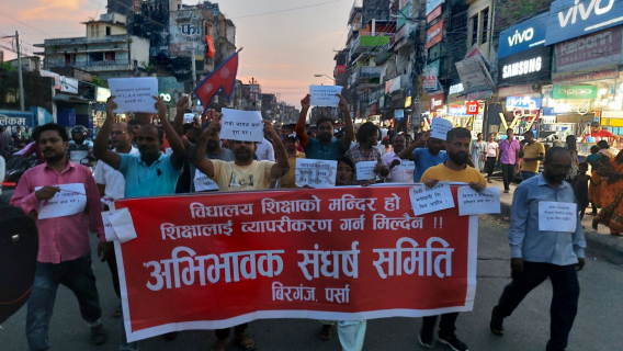 निजी विद्यालयले ज्यादती गरेको भन्दै विरोध स्वरुप अभिभावक हरुको एउटा समुह बुधबार सडकमा ओर्लेर विरोध प्रदर्शन गरेको छ।