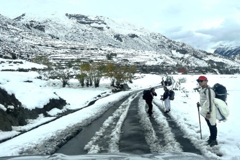 हिमपातले हिमाली भेगको जनजीवन अस्तव्यस्त बनेको छ। पदयात्राको सिजन पर्ने यो समयमा परेको बाक्लो हिमपातले हिमाली क्षेत्रको पदयात्रामा निस्केका सयौं आन्तरिक र बाह्य पर्यटक बीचमै रोकिएका छन। पदमार्ग पुरै हिउँले भरिएको छ। माथिल्लो भेगमा पुगेका सवारी समेत हिउँमै रोकिएका छन। बाक्लो हिमपातले पदयात्रामा रहेका सयौं पाहुनाको यात्रा अवरुद्ध भएको स्थानीय प्रशासनले बताएका छन।