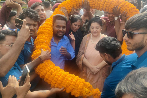 मधेस प्रदेशका केही जिल्लामा आयोजना हुने कार्यक्रममा सहभागी हुन जानेक्रममा भण्डारीलाई सिमरा विमानस्थलमा ५१ केजीको मालाले स्वागत गरिएको हो ।