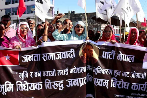 ‘भूमि विधेयक खारेज गर’, ‘किसान विरोधी नीति बन्द गर’ जस्ता नारा लगाउँदै जसपाको नेता कार्यकर्ताहरुले प्रदर्शन गरेका हुन।