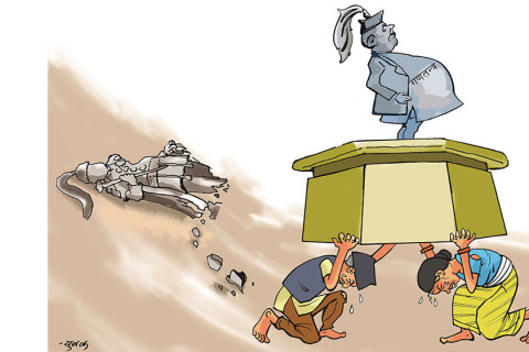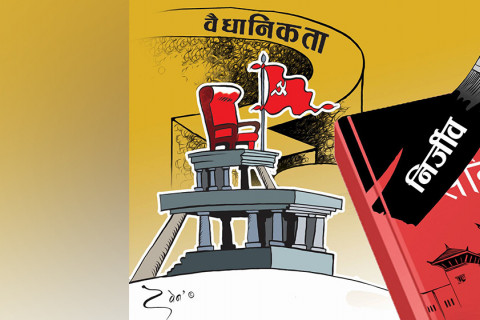 प्रचण्ड बहुमतको सरकारले तय गरेको यात्राबाट मुलुक अहिले सङ्गीन मोडमा आइपुगेको छ– कानुनसम्मत जुट, लुट र फुटको त्रिवेणी हुँदै। संविधान, विधान, नियम कानुन सब व्यक्तिकेन्द्रित बनाउने प्रयास जारी छन्। अपराध र राजनीति सहयात्री बनेका छन्। अब बन्ने सत्ता समीकरणले पनि यसै सेरोफेरोबाट अगाडिको यात्रा तय गर्नुपर्ने देखिन्छ।