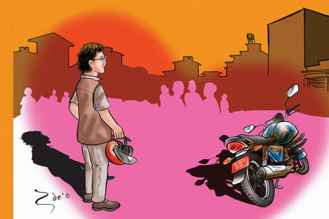 मध्यदिनमा नयाँ सडक गेटछेउमा एक जना साथीलाई कुर्दै थिएँ। उनले दिउँसो तीन बजे आइपुग्छु भन्थे, साढे तीन बजेसम्म पनि आइपुगेनन्।