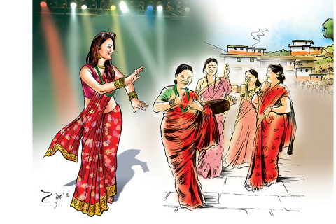 अहिले गाउँगाउँमा तीजको वास्तविक रौनक अलिअलि जीवित छ, सहरमा भने तीज कहाँ छ भनेर खोज्नुपर्ने अवस्था आएको छ।