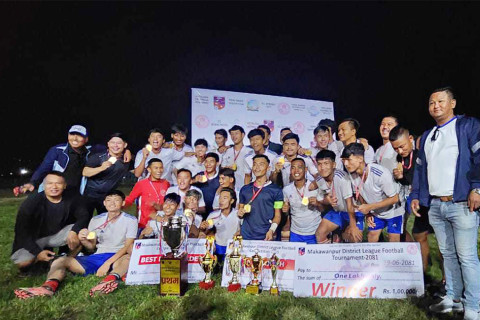 मकवानपुरको बागमती गाउँपालिकाको सहिद स्मृति क्लवलाई स्तब्ध पार्दै हेटौंडाको पदमपोखरी युवा क्लवले जिल्ला लिग फुटबल प्रतियोगिताको उपाधि जितेको छ।