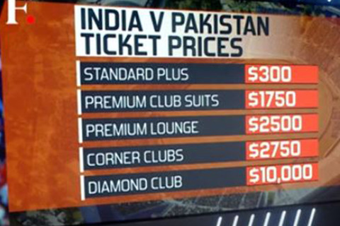 भारत र पाकिस्तानबिचको खेलको टिकट मूल्य १३ लाख सम्म