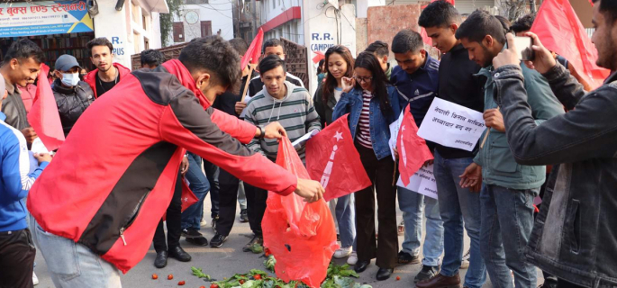 सरकारविरुद्ध अनेरास्ववियु आर.आर क्याम्पस कमिटीले प्रदर्शन गरेको छ। बिहीबार क्याम्पस अगाडि कमिटीले प्रदर्शन गरेका हुन्।