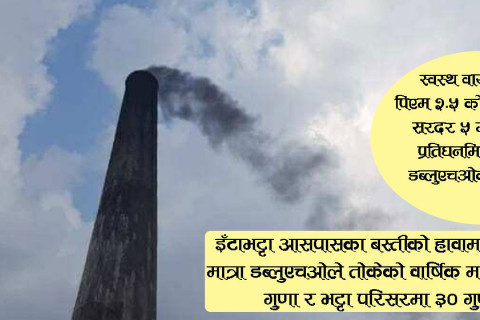इँटाभट्टा सञ्चालनमा रहेका बेला परिसरमा पिएम २.५ को सरदर स्तर १५१.२ माइक्रोग्राम प्रतिघनमिटर र भट्टा नचलेका बेला ८.८ माइक्रोग्राम प्रतिघनमिटर पाइयो ।