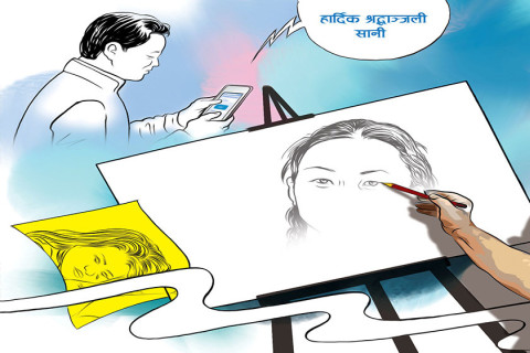 सादा पानामा पेन्सिलले कोरिरहन्छु। एक्कासी ठुल्ठुला आँखा आकार आउँछ। मिलेका परेली अनि अव्यक्त प्रेम बोलिरहेका आँखा !