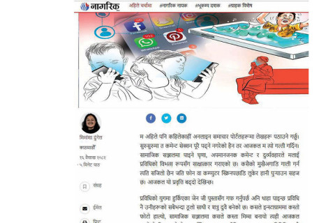 नागरिक दैनिक (राष्ट्रिय) पत्रिका। सखारै आइपुगेछ– निष्ठाछेँ, सूर्यविनायक मार्ग, सिपाडोल। करिब चारपाँच दिन बिरानमा बल्ल भित्रिएको। प्रफुल्ल चित्तले पल्टाउन थालेँ।