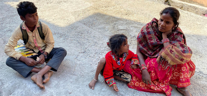 करिब तीन/चार वर्षकी एउटी बालिका जो खाली खुट्टा थिइन। पाँच/छ वर्षको एउटा बालक, उनको खुट्टामा पनि जुत्ता चप्पल थिएन। उनीहरुको साथमा थिइन, बालिकाकी आमा र बालककी दिदी। ती बालक घरको ढोकामा उभिएर बारम्बार घण्टीको स्विच थिचिरहेका थिए।