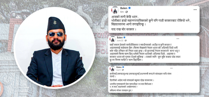 ‘बालेन शाहलाई जवान हेर्न मेरो पनि आग्रह छ। जवान हेरेपछि बाहिरिँदै गएका नेपाली जवान रोक्ने आइडिया सायद उनको दिमागमा फुर्छ कि,’ सामाजिक सन्जालमा विनोद प्रजापति लेख्छन्, ‘दैनिक २ हजारभन्दा बढी जवान बाहिरिनुमा कतै सिस्टम त दोषी छैन ?