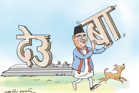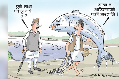 ‘बाटामा हिँड्दाहिँड्दै मन्त्रीमा नियुक्ति हाेला भन्ने डर भाे!’ यसरी आजकाे कार्टुनले समसामयिक विषय सुन्दर रूपमा प्रस्तुत गरेकाे छ।