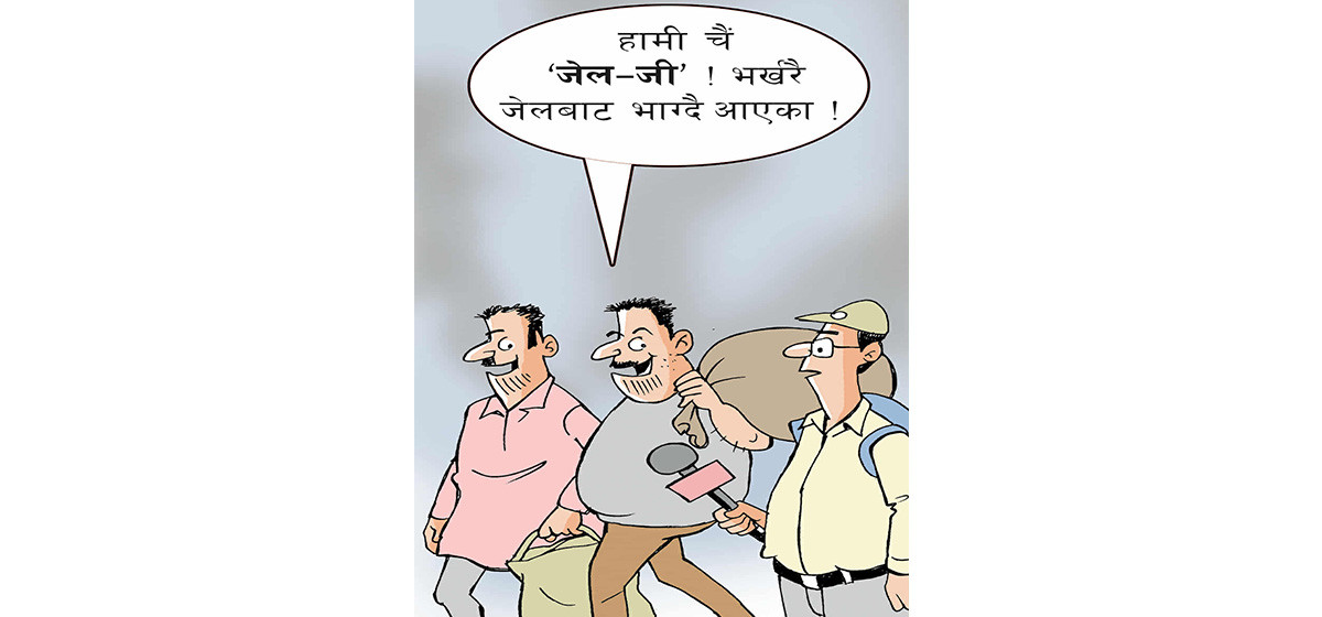 आजकाे कार्टुन: हामी चैं ‘जेल-जी’ ! भर्खरै जेलबाट भाग्दै आएका! कार्टुनले समसामयिक विषय प्रस्तुत गरेकाे छ।