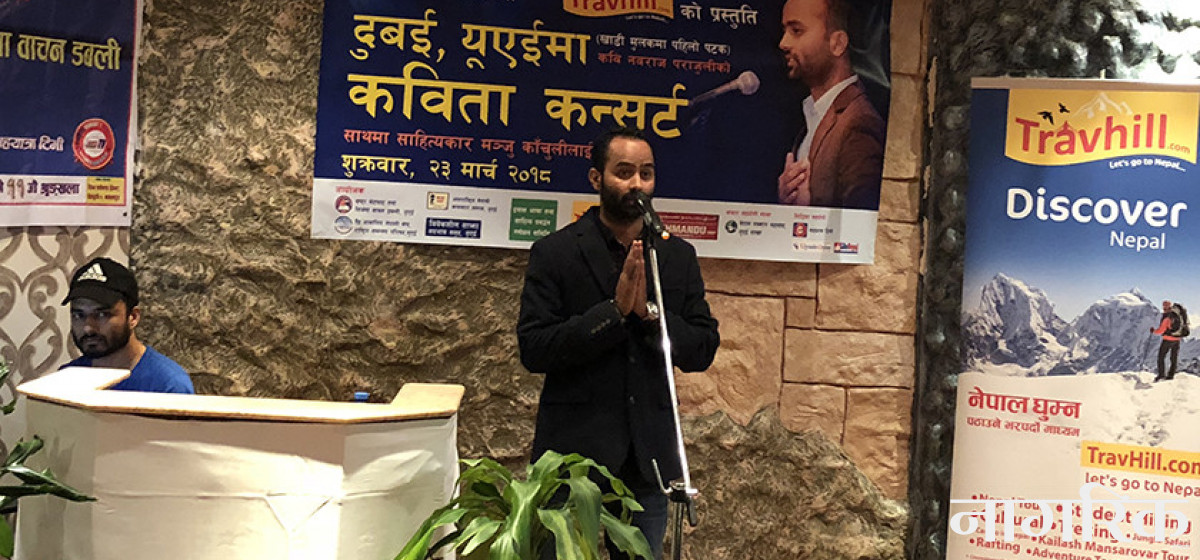 युएइ –साहित्यकार तथा कवि नवराज पराजुलीको कविता कन्सर्ट युएईमा सम्पन्न भएको छ। सृजना वाचन डबली तथा ट्राभहिल डट कमले आयोजना गरेको कविता कन्सर्टमा कवि पराजुलीले आफ्नो प्रस्तुति दिएका थिए। यो वर्षको पद्मश्री पुरस्कारबाट विभुषित “सगरमाथाको गहिराई” का सर्जक कवि पराजुलीको मध्यपूर्व यात्रा भने यो पहिलो हो।