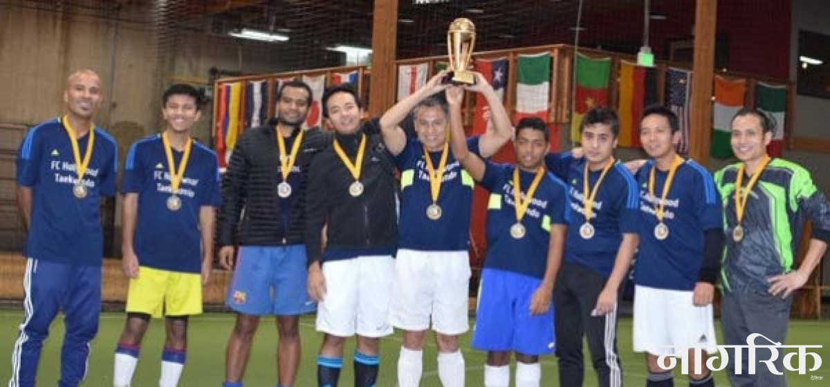 ओरेगन- पोर्टल्यान्डस्थित रोस सिटी क्बलमा सञ्चालन भइरहेको रोस सिटी फाइव अ साइड फुटसल लिगको उपाधि नेपाली खेलाडीहरूको टोली एफ सी हलिउड तेक्वान्दोले जितेको छ। रोस सिटी क्लबस्थित वार्सिलोना कोर्टमा भएको अन्तिम लिग खेलमा विजेता टिमले बुट्स अफ ग्लोरीमाथि पाँचका विरुद्ध १० गोलको फराकीलो जित दर्ता गराएको थियो।जसमा अमृत थापा र केविन महर्जनले तीन-तीन गोल गरेका थिए भने पासाङ्ग शेर्पाले दुई गोल गरेका थिए। त्यस्तै सूर्य थापा र विक्रम महर्जनले एक एक गोलको योगदान दिएका थिए। सूर्य थापा क्षेत्रीको नेतृत्वमा रहेको नेपाली टोलीले खेलेको कूल आठमध्ये सात वटा म्याचमा जित हासिल गरेको थियो भने एउटामा पराजित भएको थियो।